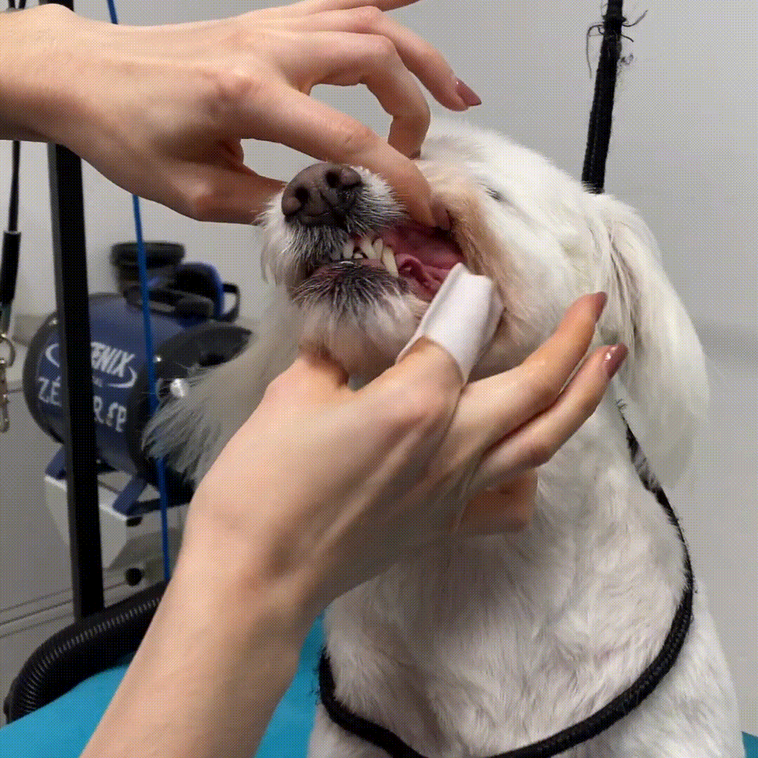 האצבעון מאפשר צחצוח עם האצבע עצמה, מה שנותן שליטה מלאה ועדינות גבוהה יותר לעומת מברשת רגילה. המגע מרגיש טבעי לכלב, מפחית התנגדות ולחץ, ומאפשר להגיע בקלות גם לקו החניכיים, שם מצטבר רוב הלכלוך.