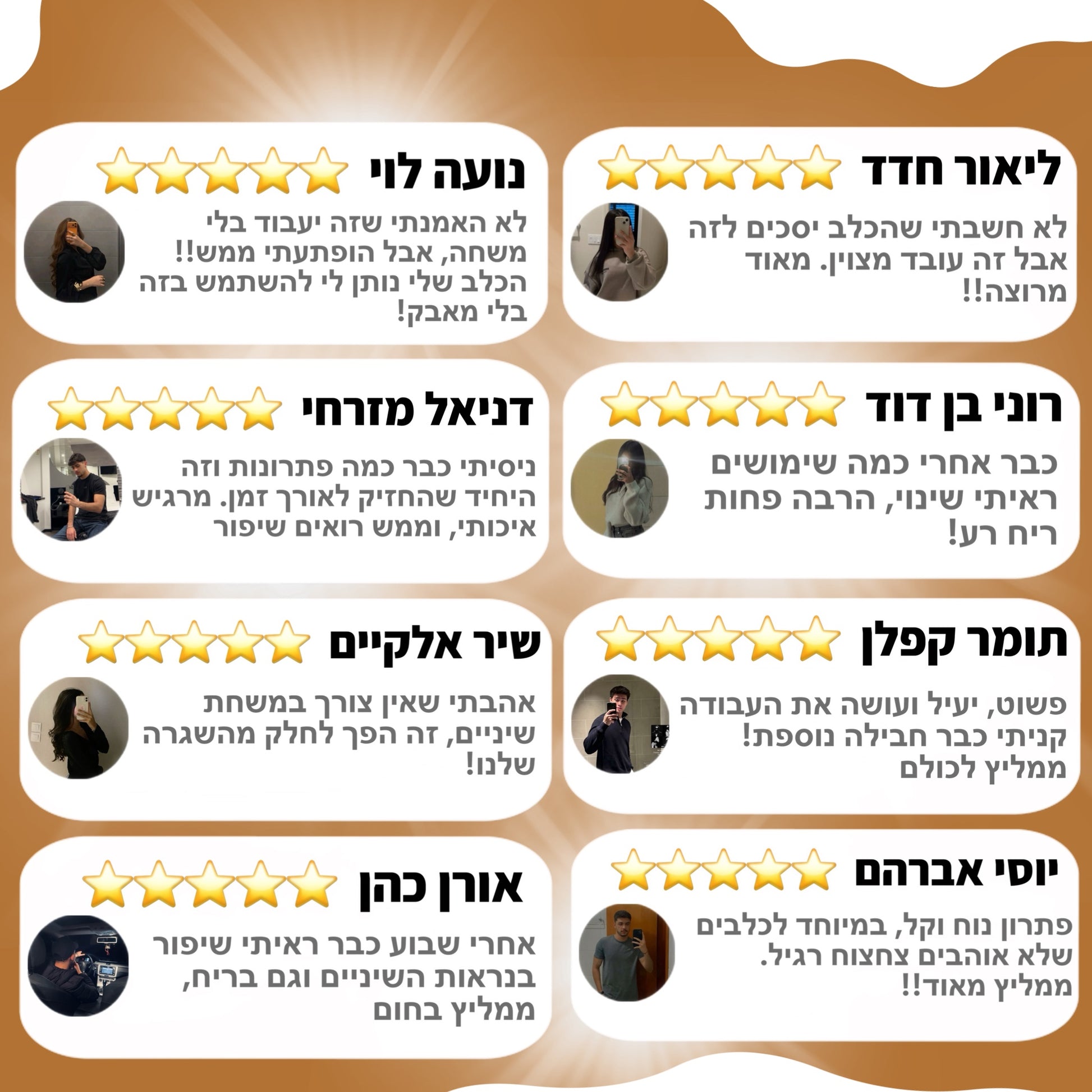דיווחו על שיפור ברור בניקיון השיניים והחניכיים של הכלב כבר מהשימושים הראשונים
