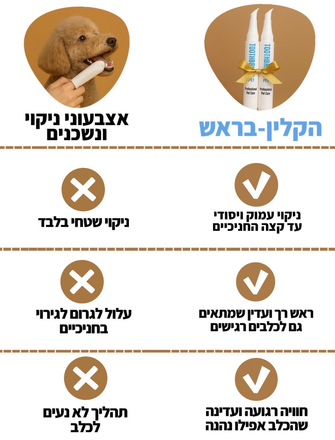 • רוב המברשות בשוק קשות, מכאיבות לכלב, ומנקות רק את השכבה החיצונית ולא נותנות תוצאות שנשמרות לאורך זמן.