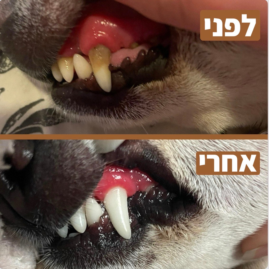 בערכה תקבלו מברשת ייעודית + משחת שיניים טבעית לכלבים.